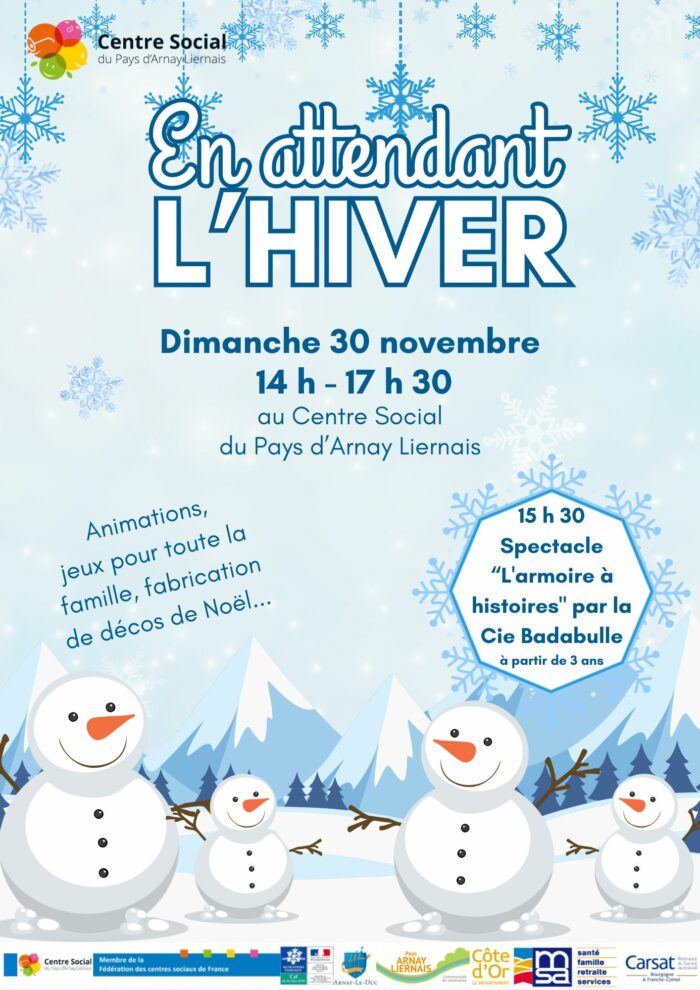 octobre 24, 2025 11:44 amLa lettre d’information « Les P’tites Infos » vous annonce les évènements et animations du mois à venir au Centre Social du Pays d’Arnay Liernais. Publiée chaque mois, elle est envoyée automatiquement à tous les contacts inscrits sur notre site internet ainsi qu’au adhérents de l’association. Si vous ne la recevez pas ou ne parvenez pas à vous inscrire, contactez-nous au 03 80 90 17 55.