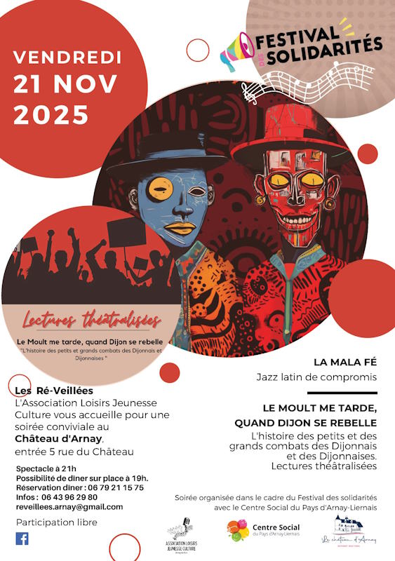 Le Festival des Solidarités est un événement international organisé localement par un collectif d’associations. À Arnay-le-Duc, ce collectif est composé de l’Association Loisirs Jeunesse Culture, du Secours Catholique, des Restos du Cœur, de Petits Frères des Pauvres, de la Mission Locale et du Centre Social du Pays d’Arnay Liernais.