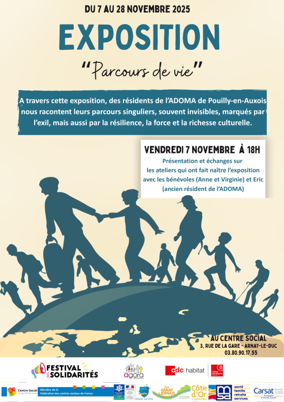 A travers cette exposition, des résidents de l’ADOMA de Pouilly-en-Auxois nous racontent leurs parcours singuliers, souvent invisibles, marqués par l’exil, mais aussi par la résilience, la force et la richesse culturelle.